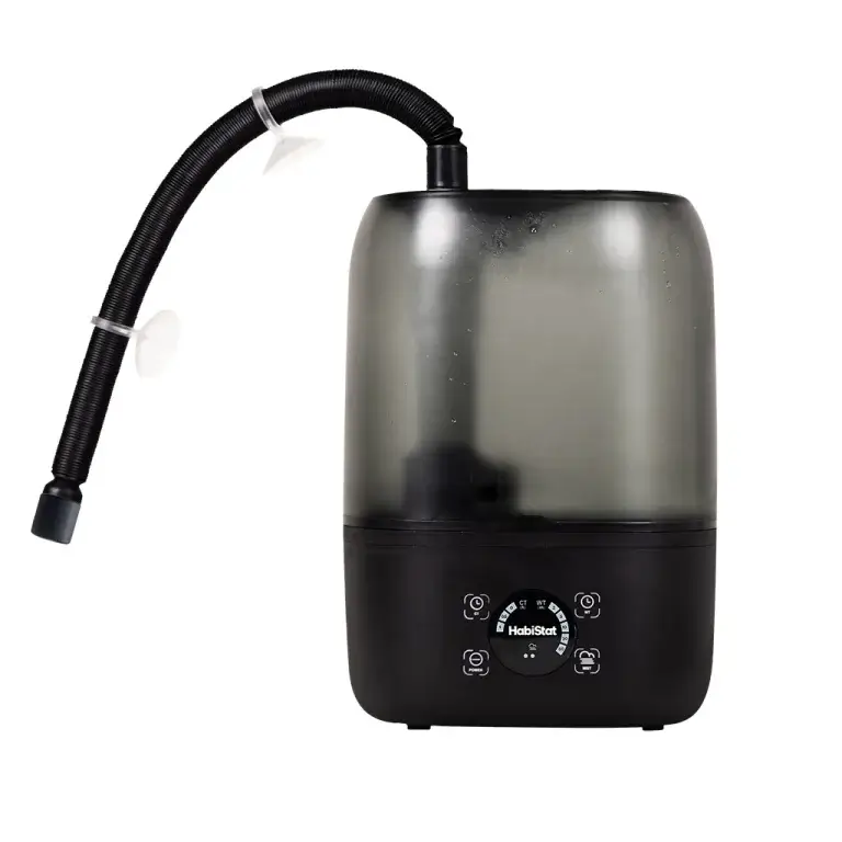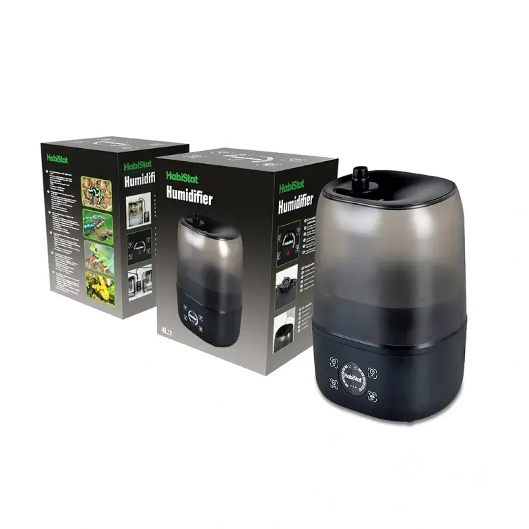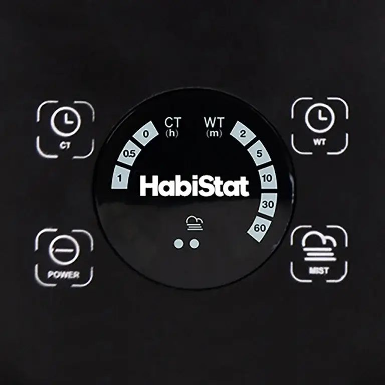 Fácil de instalar y confiable, el humidificador HabiStat crea una nube de humedad práctica y realista y se puede programar fácilmente, utilizando los botones táctiles digitales LED y el temporizador digital incorporado, para satisfacer los requisitos de las distintas especies.