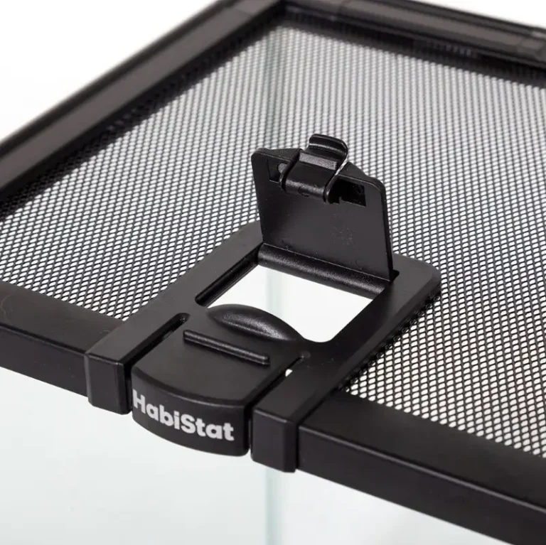 - Instalar un HabiStat Humidificador o Hacedor de lluvia A través del acceso seguro al orificio del tapón en la tapa de malla