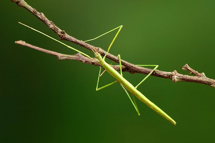 Los insectos palo son miembros del orden Phasmatodea y hay más de 3000 en todo el mundo en este orden. En su hábitat natural, una especie arbórea, les encanta pasar tiempo en los árboles y otras plantas. Asegúrese de agregar plantas y ramas a su recinto en cautiverio. Los insectos palo tienen varias formas y tamaños, algunos son largos y cilíndricos, otros son planos y se parecen a las formas de hojas del suelo del bosque.