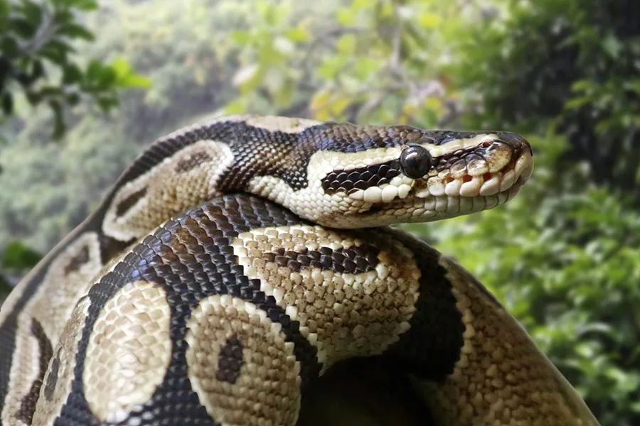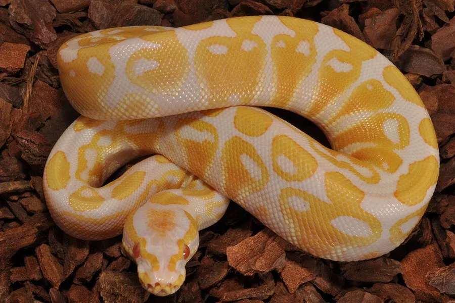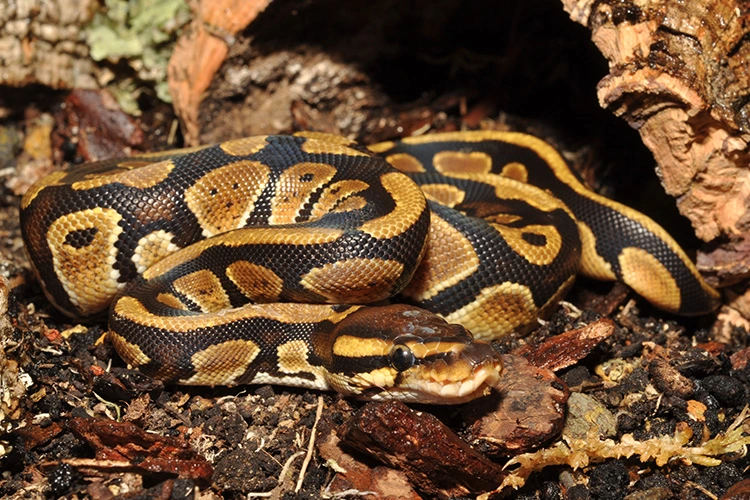 La pitón real (Python regius) tiene un carácter dócil y tímido. En muchos otros países también se la conoce como "pitón bola", ya que a menudo se enrosca en una pose similar a una bola. Su hábitat natural consiste en pastizales y áreas de bosque abierto. Es una especie semiarbórea, se la puede encontrar en el suelo del bosque, pero también trepa árboles y arbustos para cazar comida. Asegúrese de que su recinto tenga troncos y ramas de nivel bajo para proporcionar enriquecimiento. La pitón real se ha mantenido y criado en cautiverio con éxito durante muchos años, lo que ha proporcionado una variedad de formas de color disponibles, "banana", "champán" y "pastel" son algunos de los que están ampliamente disponibles.