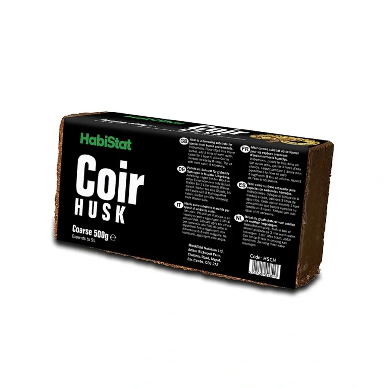 HabiStat Coir Coarse Husk is een samengeperst blok grof graafsubstraat voor soorten uit vochtige omgevingen.