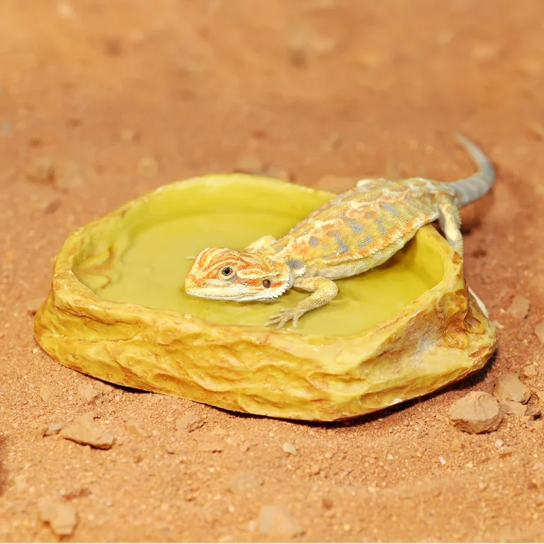 HabiStat Sandstone Water Dish fits neatly in any setup.