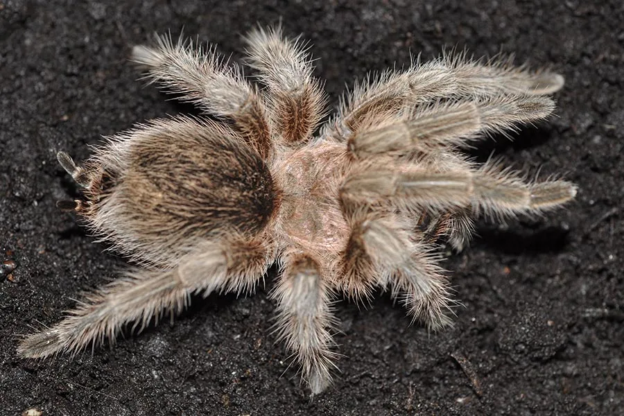 The Chilean Rose Tarantula (Grammostola rosea) is probably the most common species of Tarantula available in American and European pet stores today. A terrestrial species, they live in the crevasses of rocks and trees. They naturally prefer dry desert scrubland regions but will roam around to find more suited areas for food and shelter. The male of the species has a life span of 3-7 years whereas females live for 20 years.